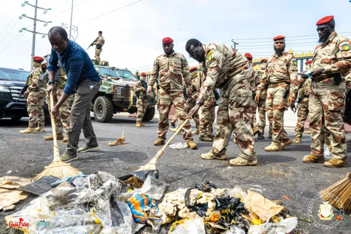 Cet acte symbolique s’inscrit dans le cadre de la Campagne d’assainissement du Grand Conakry, lancée officiellement le 14 juillet 2022. Depuis cette date, le Général DOUMBOUYA s’est personnellement investi dans cette cause nationale, en incitant les citoyens à prendre conscience de la nécessité d’un environnement propre et sain pour améliorer la qualité de vie des Guinéens. En se lançant dans le nettoyage des artères principales de la ville, il a donné le ton, en montrant l’exemple à suivre. Ce geste a pour but de sensibiliser la population, notamment les habitants et commerçants des quartiers comme Madina, qui jouxtent cette autoroute, à prendre soin de leur environnement quotidien. L’implication physique du Président de la République dans ces activités d’assainissement est un message fort et un modèle à suivre.
