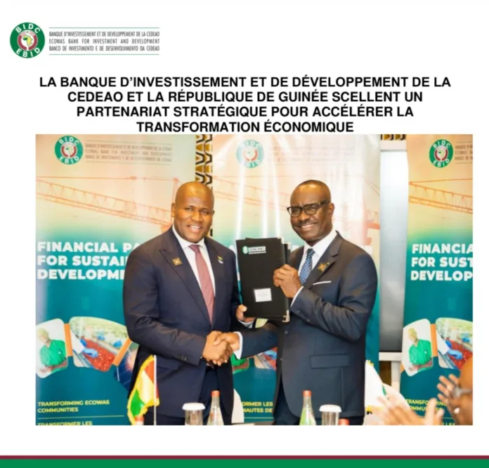 La Banque d’Investissement et de Développement de la CEDEAO (BIDC) et la République de Guinée ont officialisé un protocole d’accord visant à renforcer leur coopération dans le financement de projets de développement prioritaires en Guinée. L’accord a été formalisé le 8 avril 2026 à Accra, en marge de la 24ème Assemblée Générale Annuelle du Conseil des Gouverneurs de la BIDC.