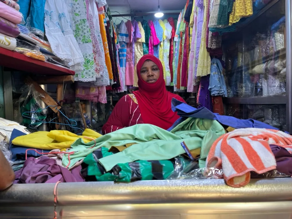 Au Niger de Madina, Mariama Diallo, vendeuse d’habits pour enfants, décrit une conjoncture particulièrement difficile pour les commerçantes, alors même que la période de fête est habituellement l’une des plus prospères de l’année.