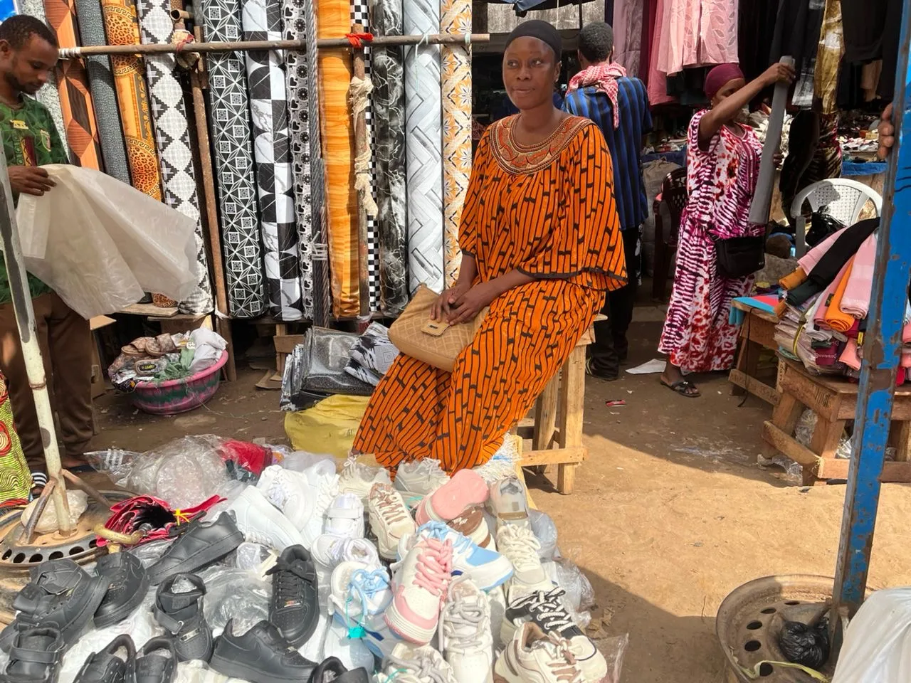 Pour Fatoumata Camara, vendeuse de robes et de chaussures pour enfants, la situation actuelle cumule plusieurs obstacles.