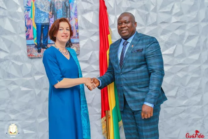 En introduction, le Ministre a exprimé sa satisfaction de recevoir cette délégation, rappelant que la République de Guinée et la République Fédérale d’Allemagne entretiennent, depuis les années 1960, des relations de coopération mutuelle au service du développement socio-économique. Il a salué l’appui constant de l’Ambassade d’Allemagne, notamment dans l’amélioration des conditions de vie des populations vulnérables, à travers le financement de micro-projets répondant à des besoins essentiels.