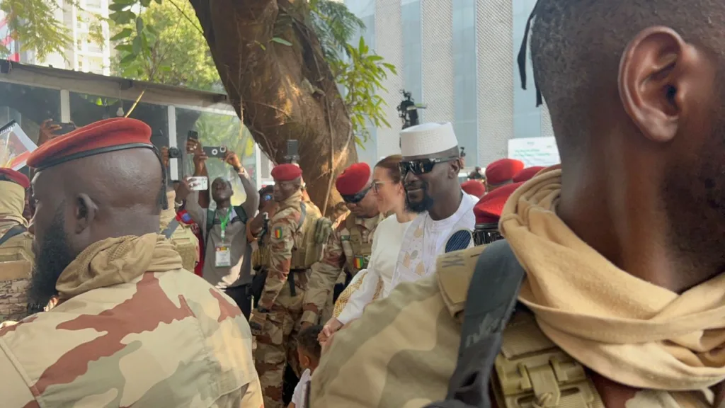 Sans faire de déclaration à la presse, Mamadi Doumbouya a quitté le centre de vote sous les acclamations de plusieurs femmes de la commune de Kaloum, avant de regagner le palais Mohamed V.