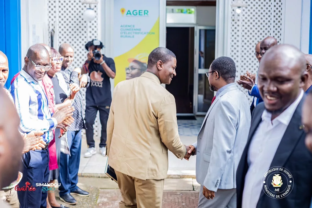 Dans le cadre de sa tournée de prise de contact avec les structures relevant de son département, 𝐥𝐞 𝐌𝐢𝐧𝐢𝐬𝐭𝐫𝐞 𝐝𝐞 𝐥’𝐄́𝐧𝐞𝐫𝐠𝐢𝐞, 𝐌𝐨𝐧𝐬𝐢𝐞𝐮𝐫 𝐍𝐚𝐦𝐨𝐫𝐲 𝐂𝐚𝐦𝐚𝐫𝐚 accompagné du 𝐒𝐞𝐜𝐫𝐞́𝐭𝐚𝐢𝐫𝐞 𝐠𝐞́𝐧𝐞́𝐫𝐚𝐥, 𝐌𝐨𝐧𝐬𝐢𝐞𝐮𝐫 𝐁𝐚𝐜𝐡𝐢𝐫 𝐂𝐚𝐦𝐚𝐫𝐚, et de la 𝐂𝐡𝐞𝐟𝐟𝐞 𝐝𝐞 𝐜𝐚𝐛𝐢𝐧𝐞𝐭, 𝐌𝐚𝐝𝐚𝐦𝐞 𝐍𝐢𝐦𝐚 𝐁𝐚𝐡, a effectué ce lundi une visite à la Direction Générale de𝐥’𝐀𝐠𝐞𝐧𝐜𝐞 𝐆𝐮𝐢𝐧𝐞́𝐞𝐧𝐧𝐞 𝐝’𝐄́𝐥𝐞𝐜𝐭𝐫𝐢𝐟𝐢𝐜𝐚𝐭𝐢𝐨𝐧 𝐑𝐮𝐫𝐚𝐥𝐞 (𝐀𝐆𝐄𝐑 .