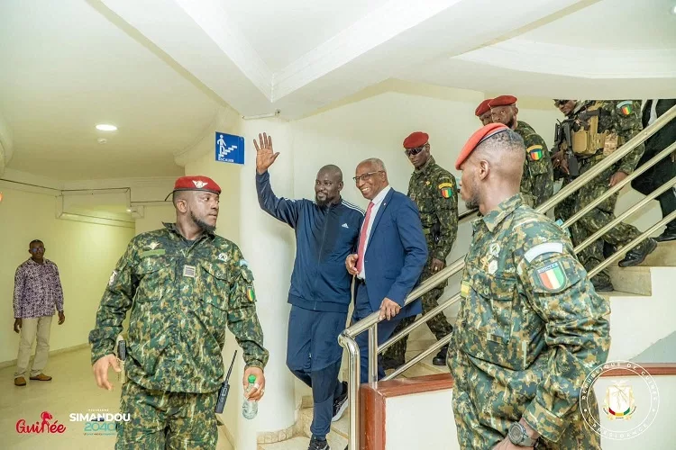 Conakry, 11 août 2025 – En marge d’une randonnée pédestre dans la commune de Kaloum, sous un ciel clément, le Président de la République, Chef de l’État, le Général Mamadi DOUMBOUYA, a effectué une visite surprise à la Primature. Il a été chaleureusement accueilli par le Premier ministre, Chef du Gouvernement, Amadou Oury BAH.